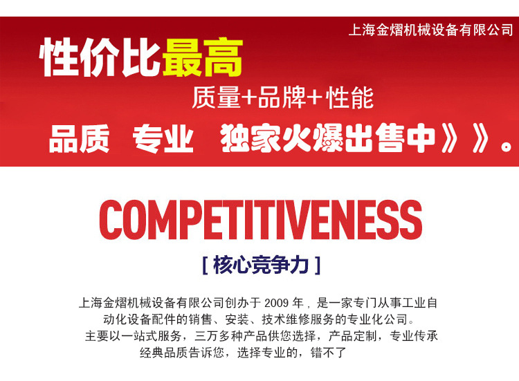 上海金熠机械设备有限公司坐落热闹的大都会-上海,我们主要处理气动元件,液压元件,喷枪,环球脚轮,橡胶制品,滚珠轴承,齿轮,链条,密封件,叉车等。30,000多种产品。